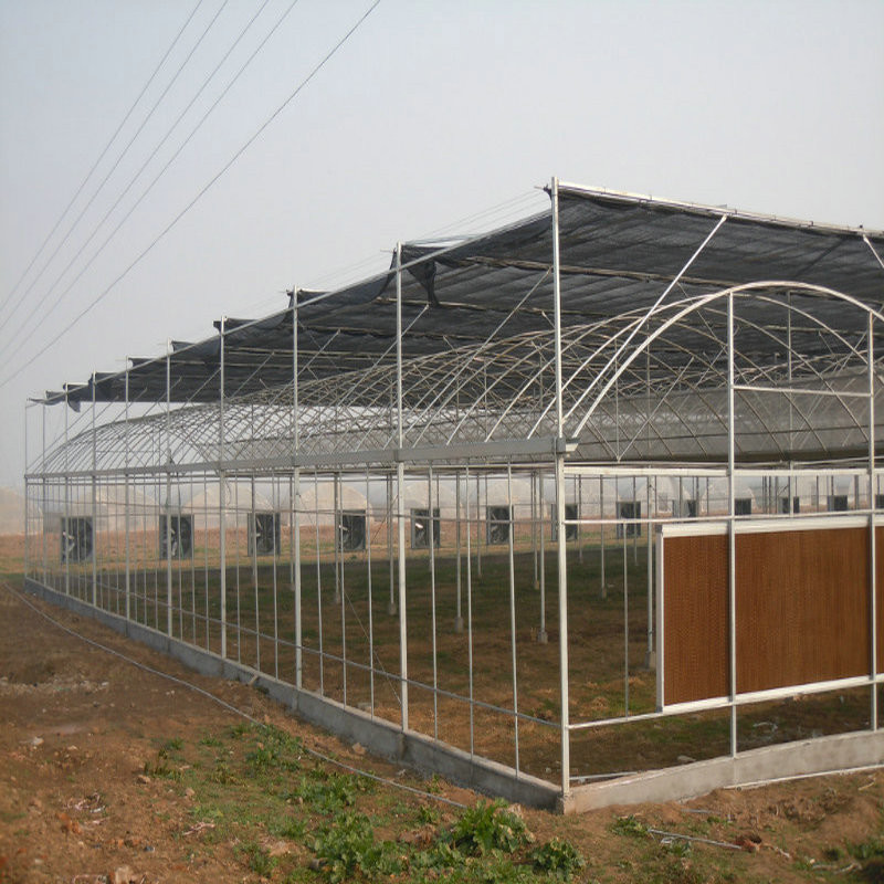โรงเรือนกระจกหลายแผ่นความกว้าง 9m 10m พร้อมระบบเงาภายในและระบบเงาภายนอก